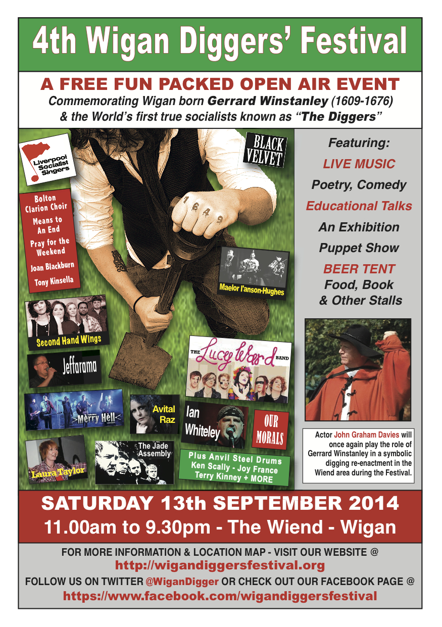 The organisers are promising another free all day fun packed open air event to commemorate Wigan born Gerrard Winstanley (1609-1676) and the 17th Century “Diggers” (True Leveller) movement.