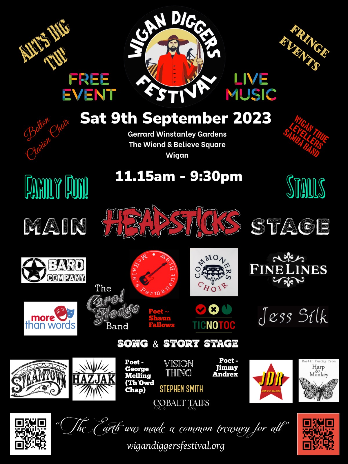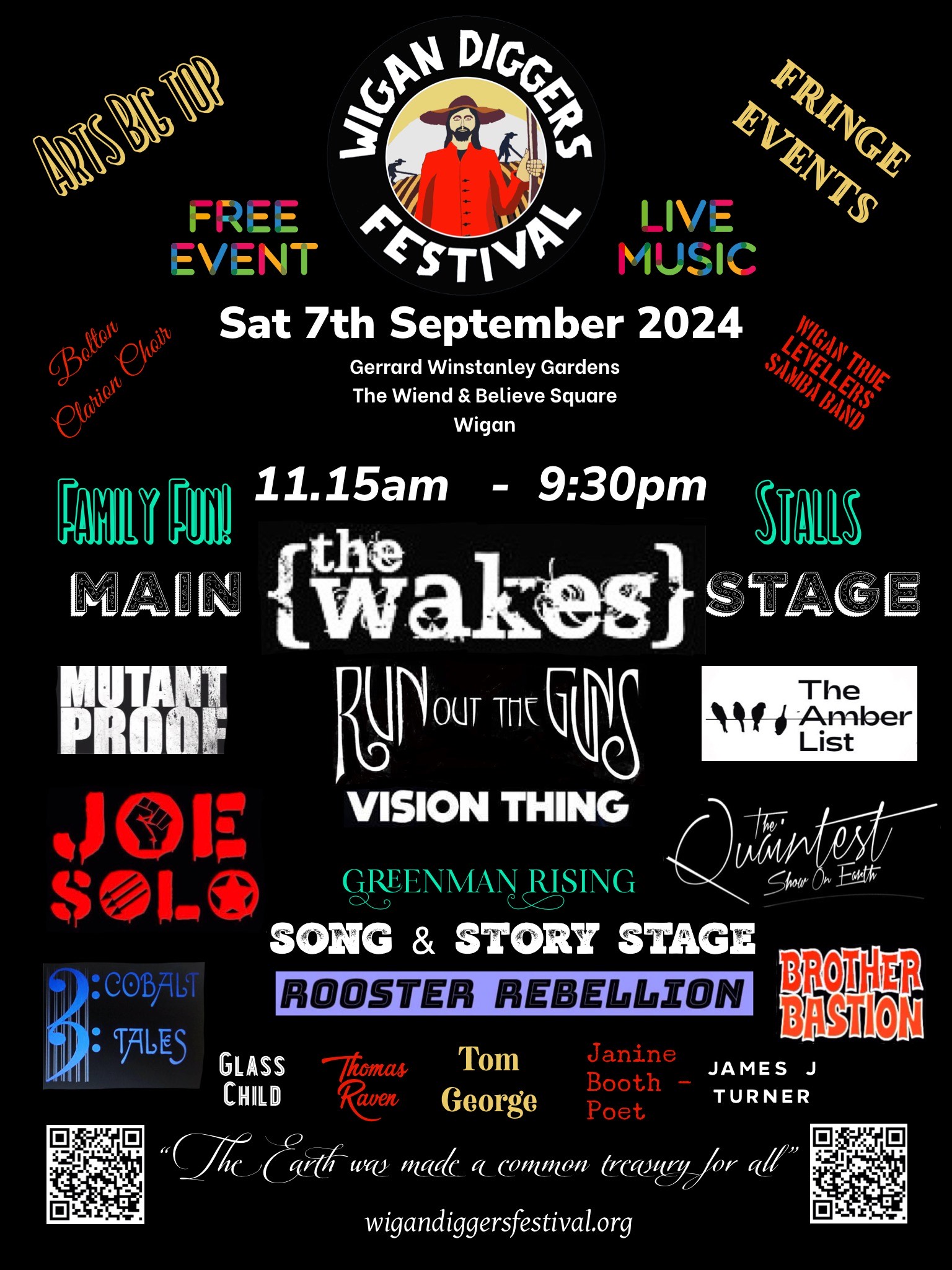 What to Expect: * Brilliant live bands & performers * Inspiring guest speakers & history talks at Wigan Museum * Diggers Bar, Diggers Merchandise, Food & drink stalls * Community & campaign stalls * Family-friendly activities & entertainment