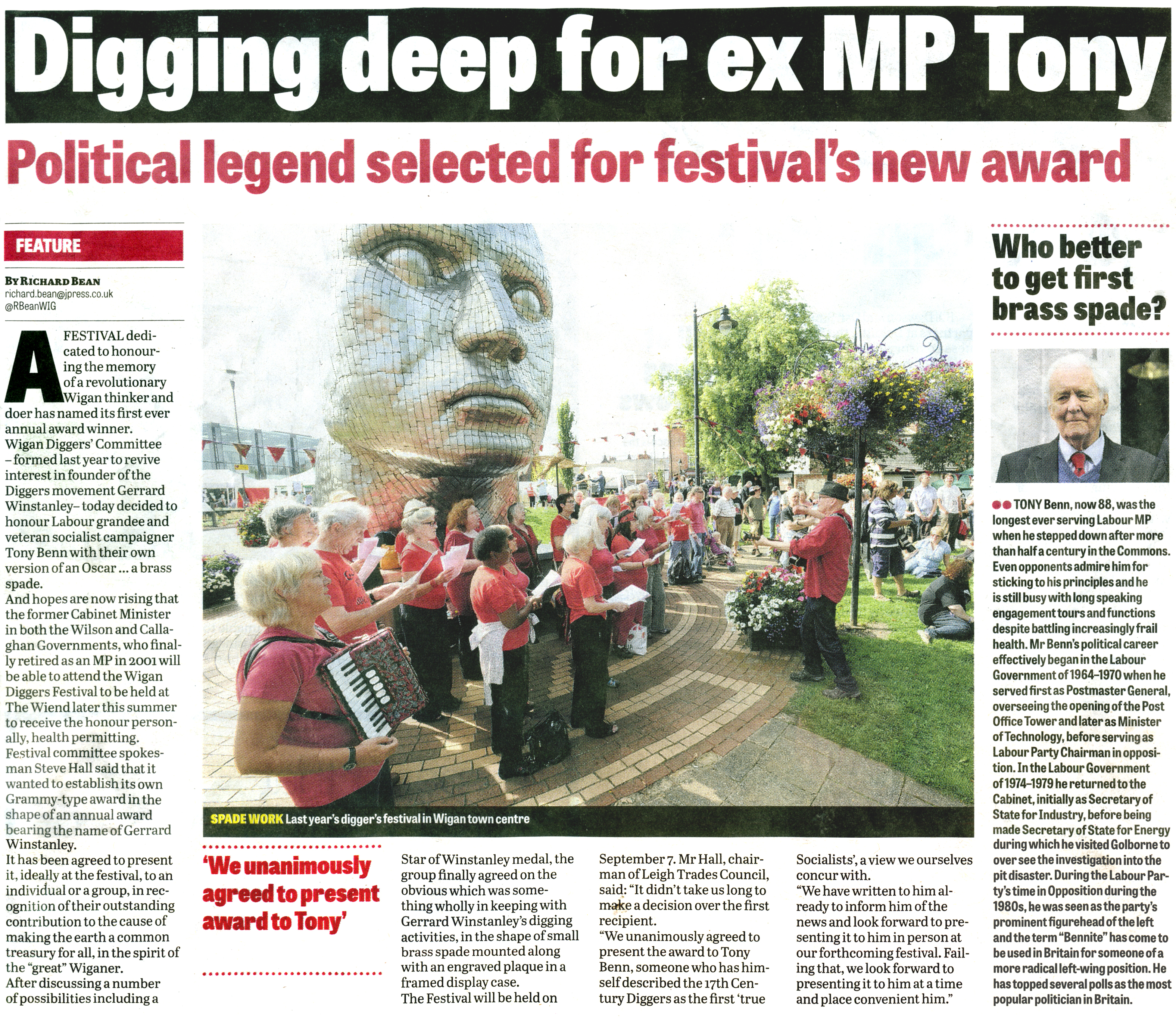 Tony Benn awarded first ‘Ged Winstanley Spade’